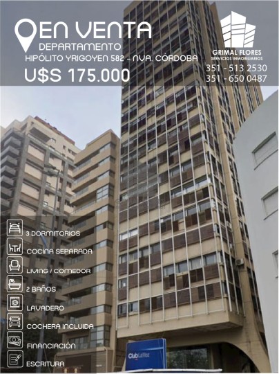 Características: Entreda principal y de servicio. 4 ascensores. - 3 dormitorios (1 con baño en suite) - Baño de cortesía - Living comedor amplio - Cocina separada ( dos entradas ) - Baño principal completo - Cochera x calle Ituzaingó. Donde hay otra entrada al Edificio también. Servicios: - Luz - Agua - Gas - Seguridad las 24hs Entorno/ubicación: - Frente a Plaza España - A 2 minutos de Ciudad Universitaria - A pocas cuadras del Parque de las Tejas y del Parque Sarmiento - A 5 minutos del centro - Líneas de colectivo en las calles que lo rodean - Hospitales, supermercados, gimnasios muy cerca. - Confiterías y Restaurantes a metros.