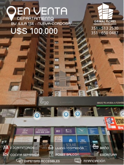 Departamento en Venta en Nueva Córdoba de 2 dormitorios! Living comedor con Balcón Contra frente Cocina separada con espacio para Lavarropas. Baño completo Dos dormitorios con placares completos Buen estado de mantenimiento Cuenta con Escritura Departamento en Tercer Piso