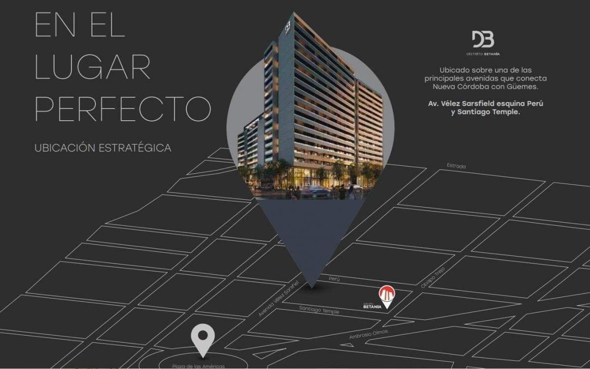 Departamentos en venta de 1, 2 y 3 dormitorios en Nueva Cordoba - Distrito Betania UNIDADES EN POZO ENTREGA AGOSTO 2029!!! Financiación en pesos entrega 30% y saldo en 60 cuotas ajustables al ICC El proyecto total estará integrado por 3 torres de arquitectura vanguardista. La zona central ofrecerá un multiespacio de ocio y espacios recreativos,locales comerciales y oficinas. Quienes vivan en Distrito Betania disfrutarán de los más completos amenities de altísima calidad y diseño: SUM con asadores, pileta, gimnasio, cocheras y seguridad las 24. hs. Distrito Betania es el lugar en el que todos quieren invertir. Terminaciones de primera calidad: - Balcones con barandas de vidrio. - Carpintería de aluminio con DVH. - Puertas y marcos de madera. - Cortina de enrollar en dormitorio. - Placares con frentes de puertas corredizas revestidas con melanina y espejo, equipados en su interior con estantes, barral para colgado y cajonera, según tipología. - Pisos y revestimientos de porcelanato. - Interiores terminados en yeso en todos los ambientes. - Cocinas equipadas con muebles bajo mesada, cajones, alacenas y mesadas de granito. - Horno y anafe separados. - Instalación para lavarropas. - Baños equipados con artefactos sanitarios, vanitory y grifería de 1ra calidad, mampara de vidrio y espejos. - Sistema central de agua caliente por termotanques de alta recuperación en departamentos de 1 dormitorio - Caldera Dual individual de 1o calidad en departamentos de 2 y 3 dormitorios (no incluye provisión y colocación de radiadores). - Pre instalación para Aire Acondicionado en dormitorio principal y estar comedor. - Control de acceso de última tecnología. - Pileta, solárium, Gym y SUM. Amenities: Piscina, Solárium, Terraza Verde, SUM con asadores, Gimnasio, Cocheras en Subsuelo, Pisos de porcelanato simil madera en todos los ambeintes, Muebles de cocina "Renno", Instalacion de aire acondicionado Cualquier consulta que tengas, no dudes en contactarnos! Lorena Borgognoni Negocios inmobiliarios Cpi: 6358